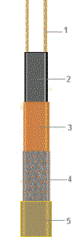 Греющий саморегулирующийся параллельный кабель с оболочкой из полиолефина, t0 поддержания до 650C, t0 внешнего воздействия до 850С
