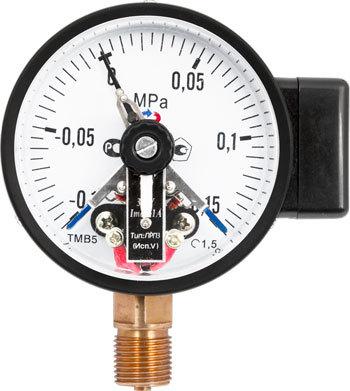 Манометр с электроконтактной приставкой, более известный как электроконтактный манометр или ЭКМ, предназначен для коммутации электрических цепей в зависимости от величины измеряемого давления.